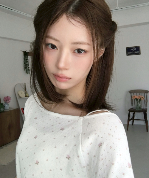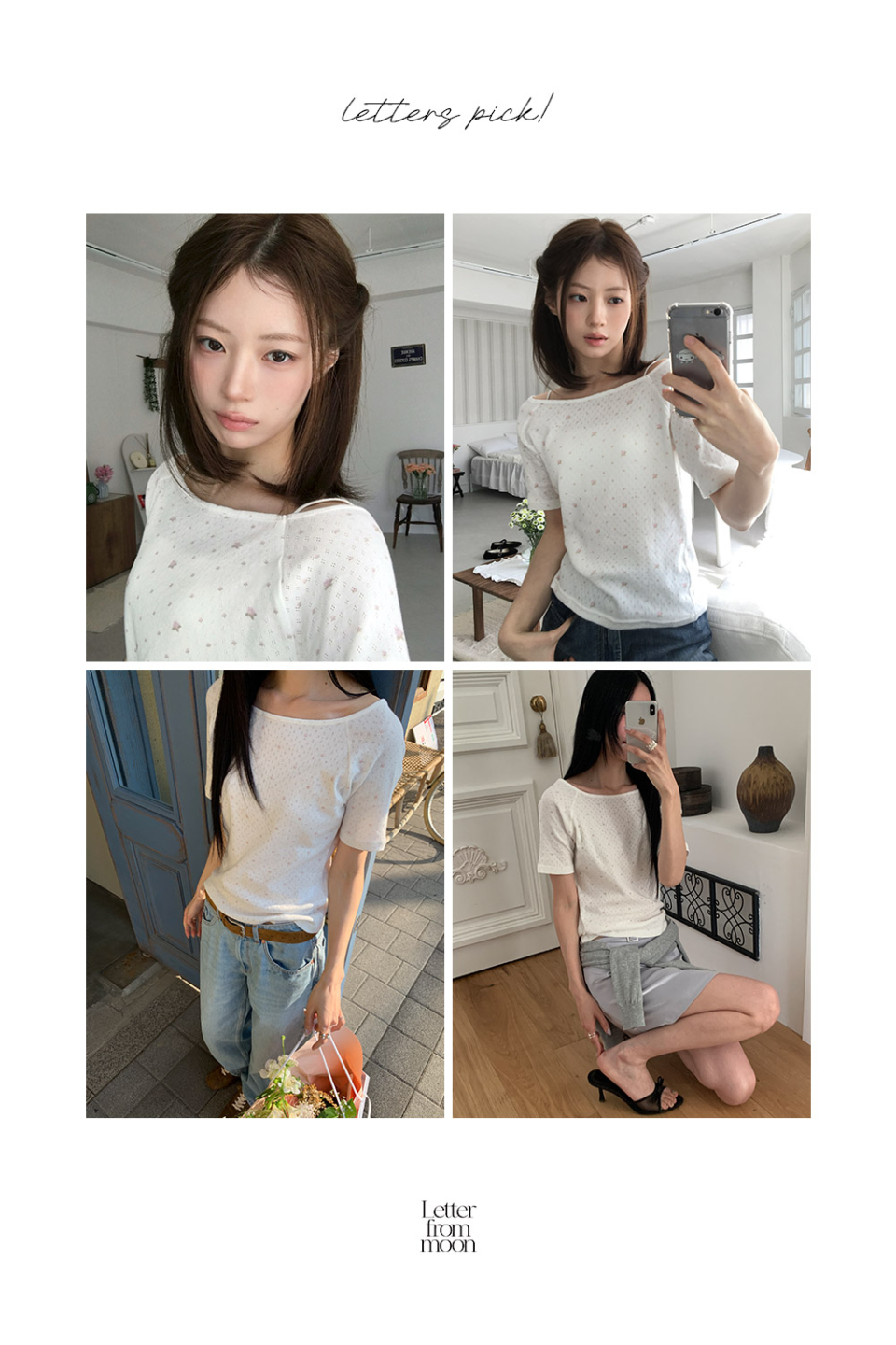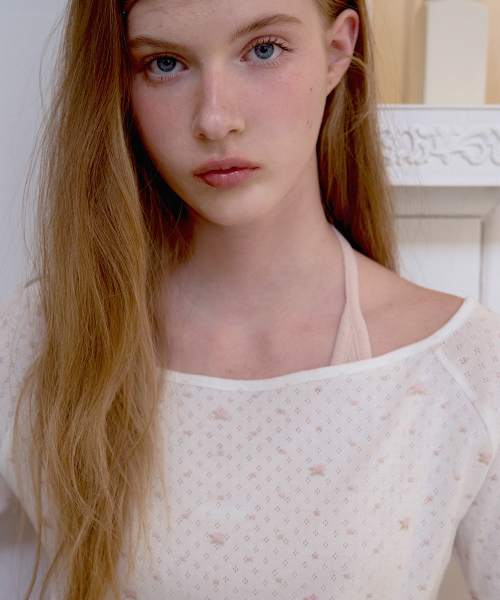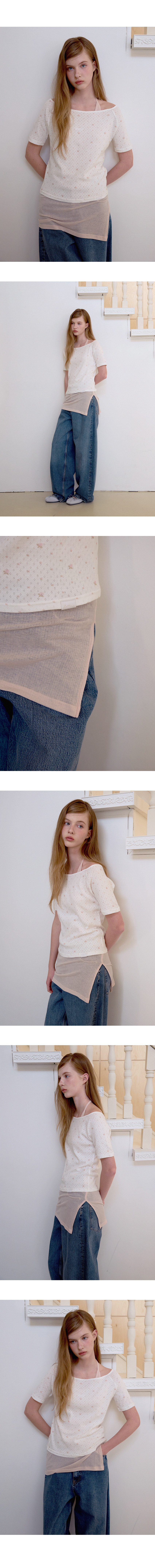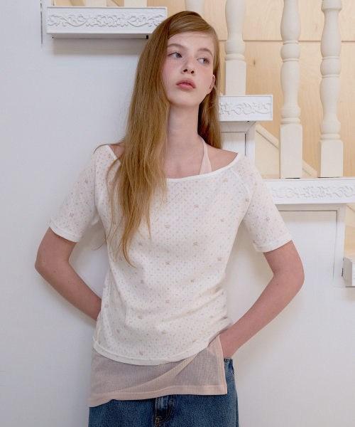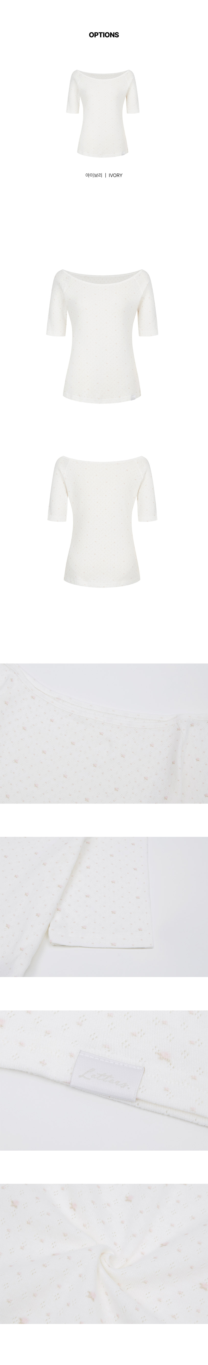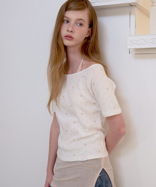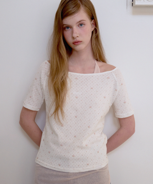 레터즈 세미 오프숄더 5부 티셔츠 ( 플라워 아이보리 )