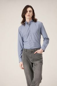 스트레치 마이크로 체크 일반핏 셔츠 네이비 YEEMBR213NY