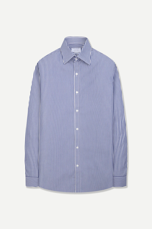 실키 터치 스트라이프 슬림핏 셔츠 네이비 YJFSUS554NY