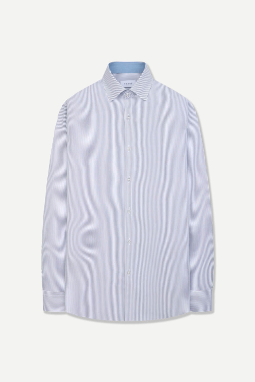 실키 터치 스트라이프 배색 슬림핏 드레스 셔츠 네이비 YJFSUS548NY