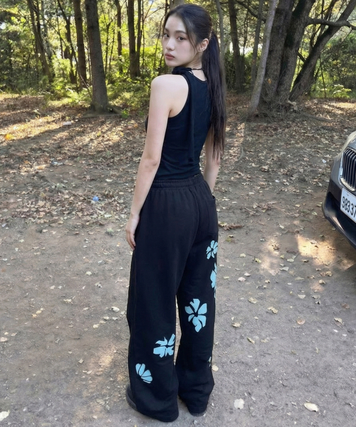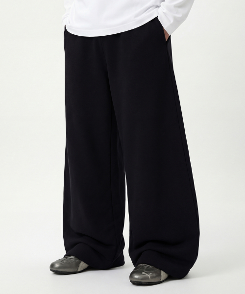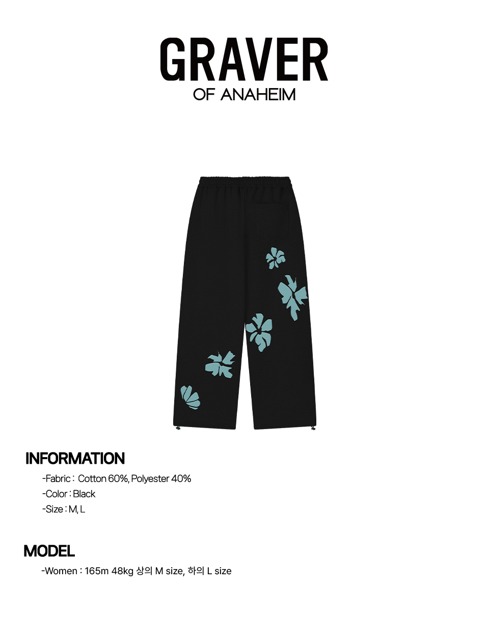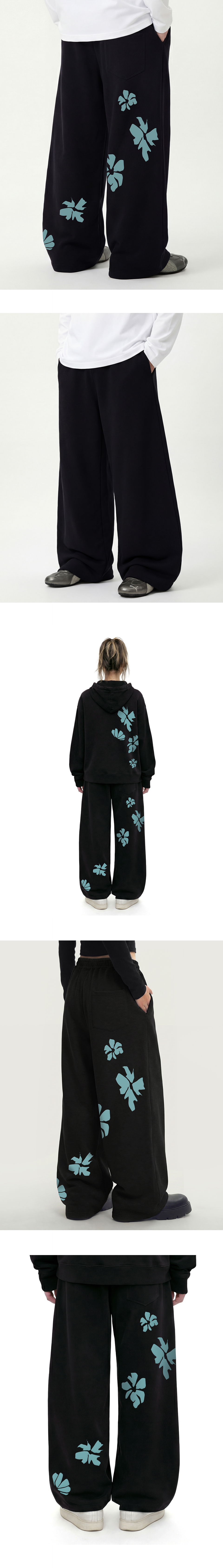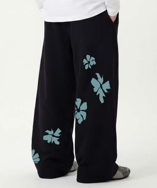 [UNISEX]STILL FLOWER 트레이닝 와이드 팬츠_BLACK