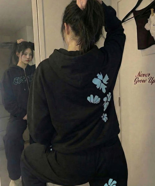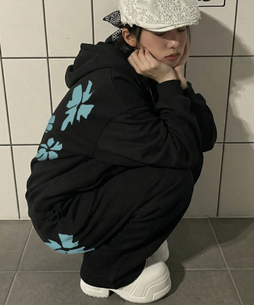 [UNISEX]STILL FLOWER 후드집업_BLACK