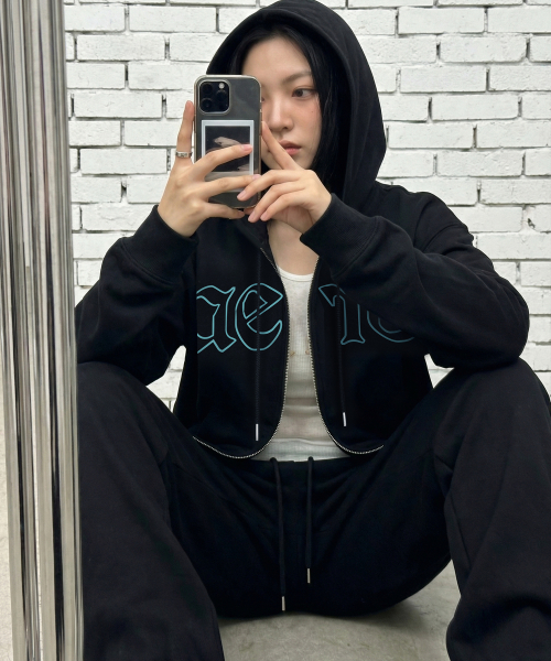 사선 투웨이 크롭 후드 집업 [블랙]