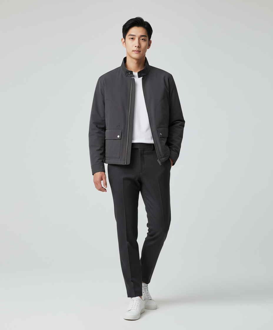 LAYERED HARRINGTON JACKET (BLACK) 4