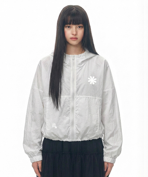 심볼 로고 후드 윈드브레이커 점퍼_화이트