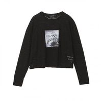 여성) 번아웃 전사프린트 긴팔 티셔츠(오버핏)_AM2WTS457-BK