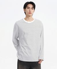 핀 스트라이프 릴렉스드 긴소매 티셔츠 [화이트/블랙]