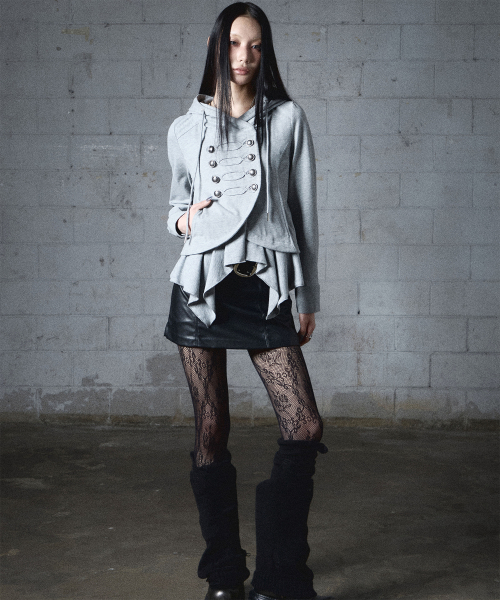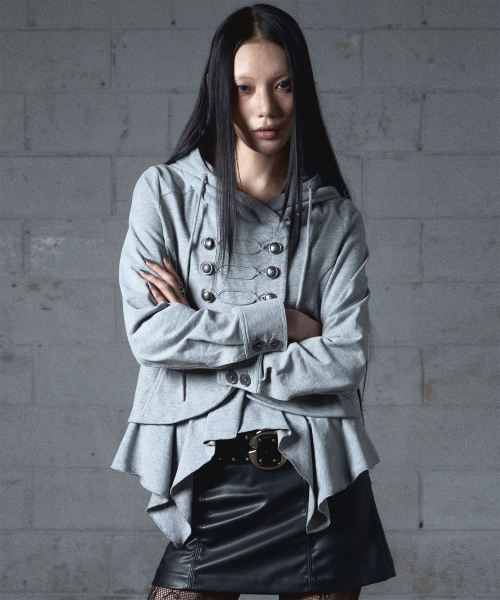 Layered Napoleon Hood Jacket (MELANGE GREY)