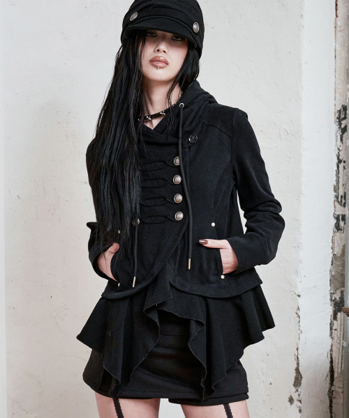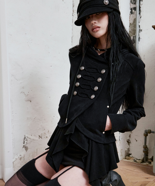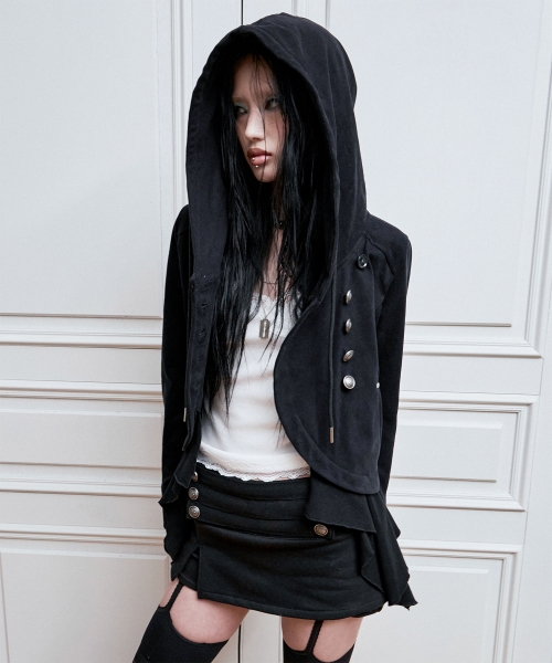 ✦ 빈티지한 터치감의 스웻 원단으로 제작된 더블 버튼 나폴레옹 후드 재킷