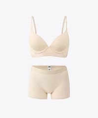 럭스 실키 터치 와이어 브라 보이쇼츠 세트_베이지