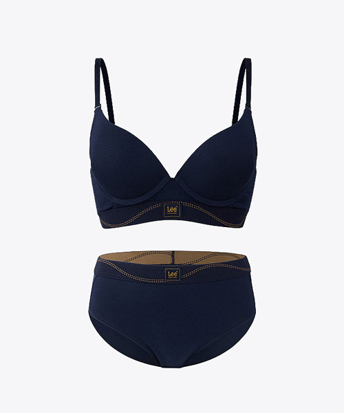 시그니처 레이지 에스 와이어 브라 헴 브리프 세트_네이비