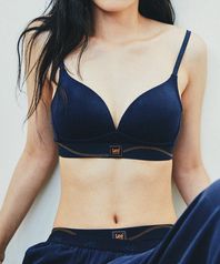 시그니처 레이지 에스 노와이어 브라 브리프 세트_네이비