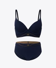시그니처 레이지 에스 노와이어 브라 브리프 세트_네이비