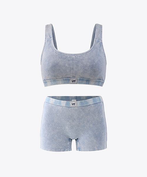 시그니처 피그먼트 브라탑 보이쇼츠 세트_데님블루