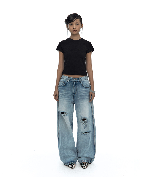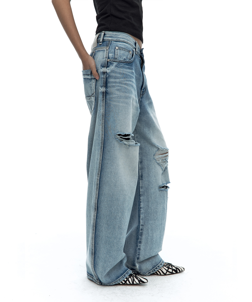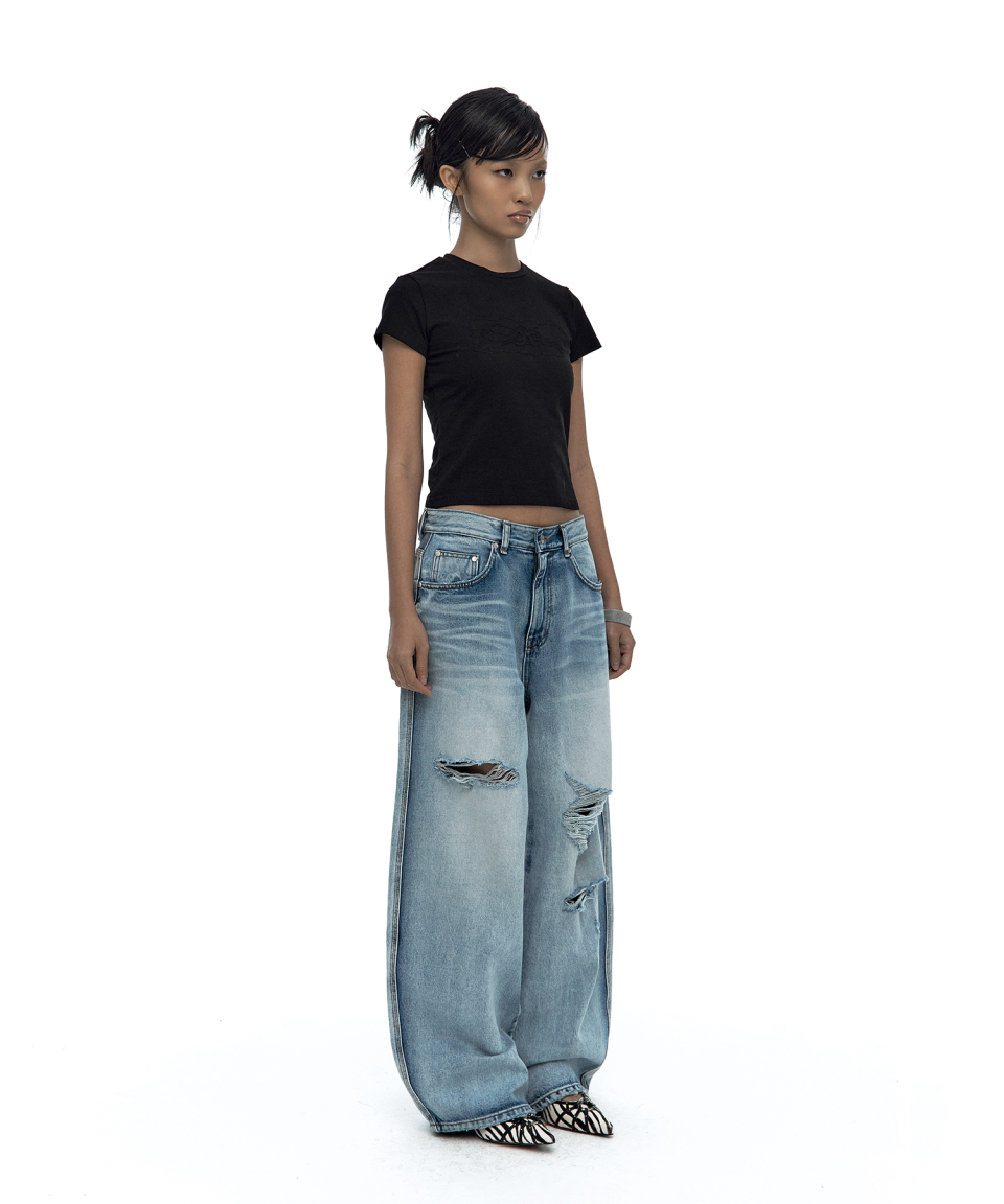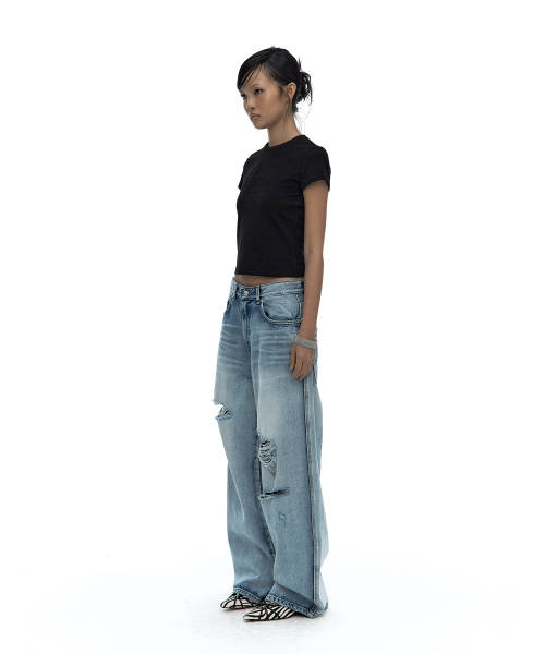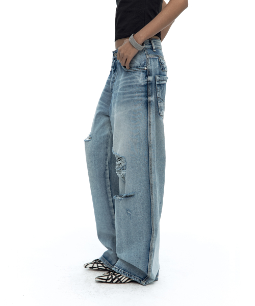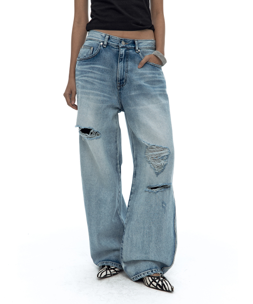 Milk Ripped Wide Jeans Light Blue