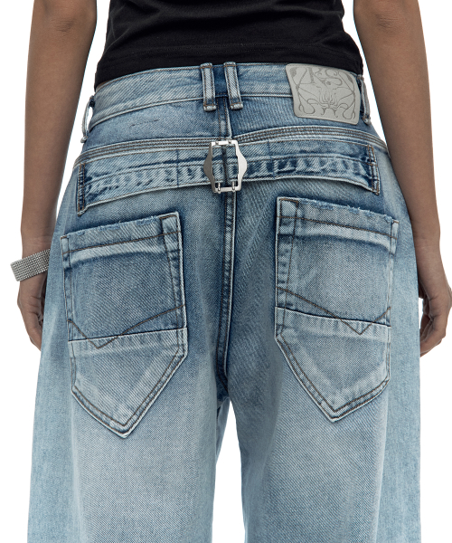 Chain Wide Denim Pants Rusty Blue