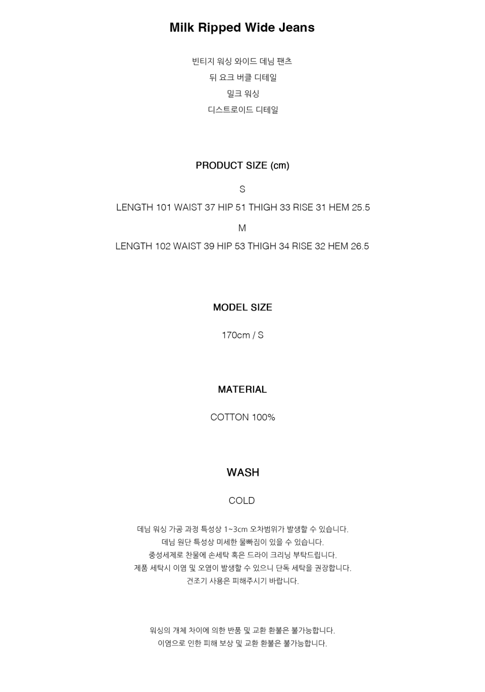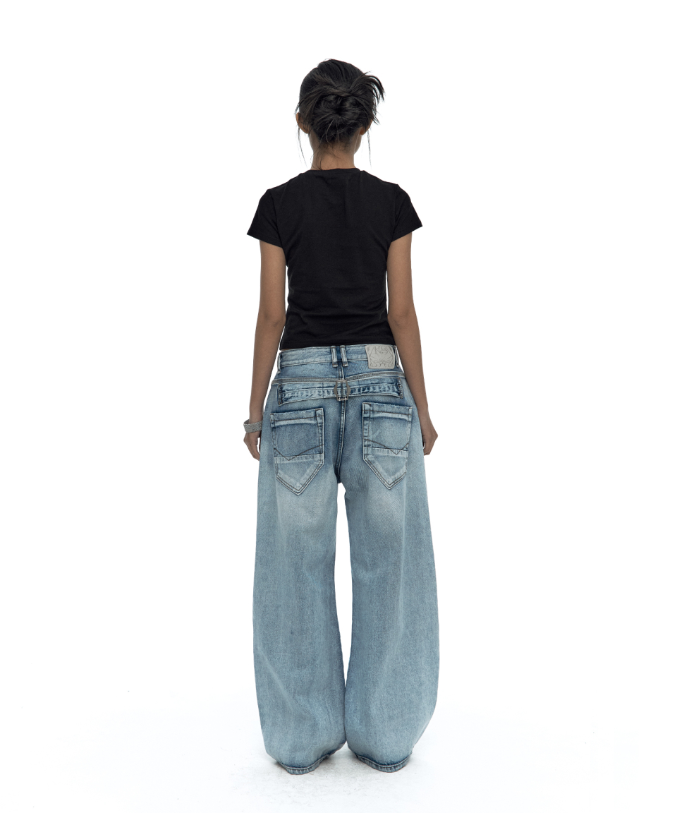 - 빈티지 워싱 와이드 데님 팬츠