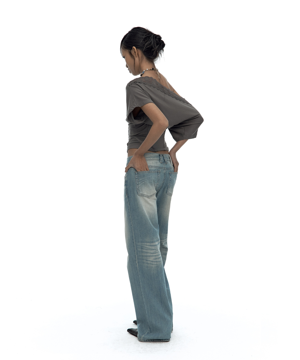 - 로우라이즈 스트레이트 루즈 핏