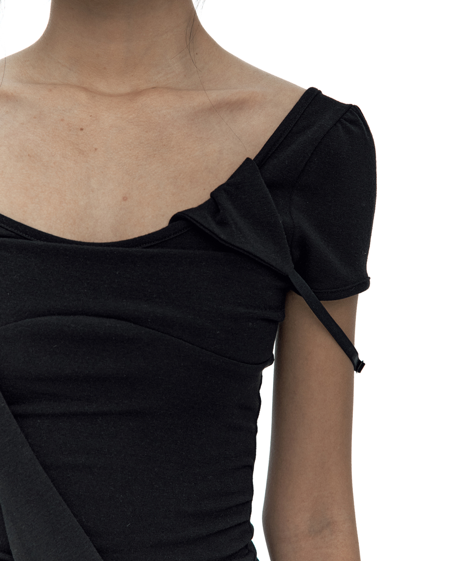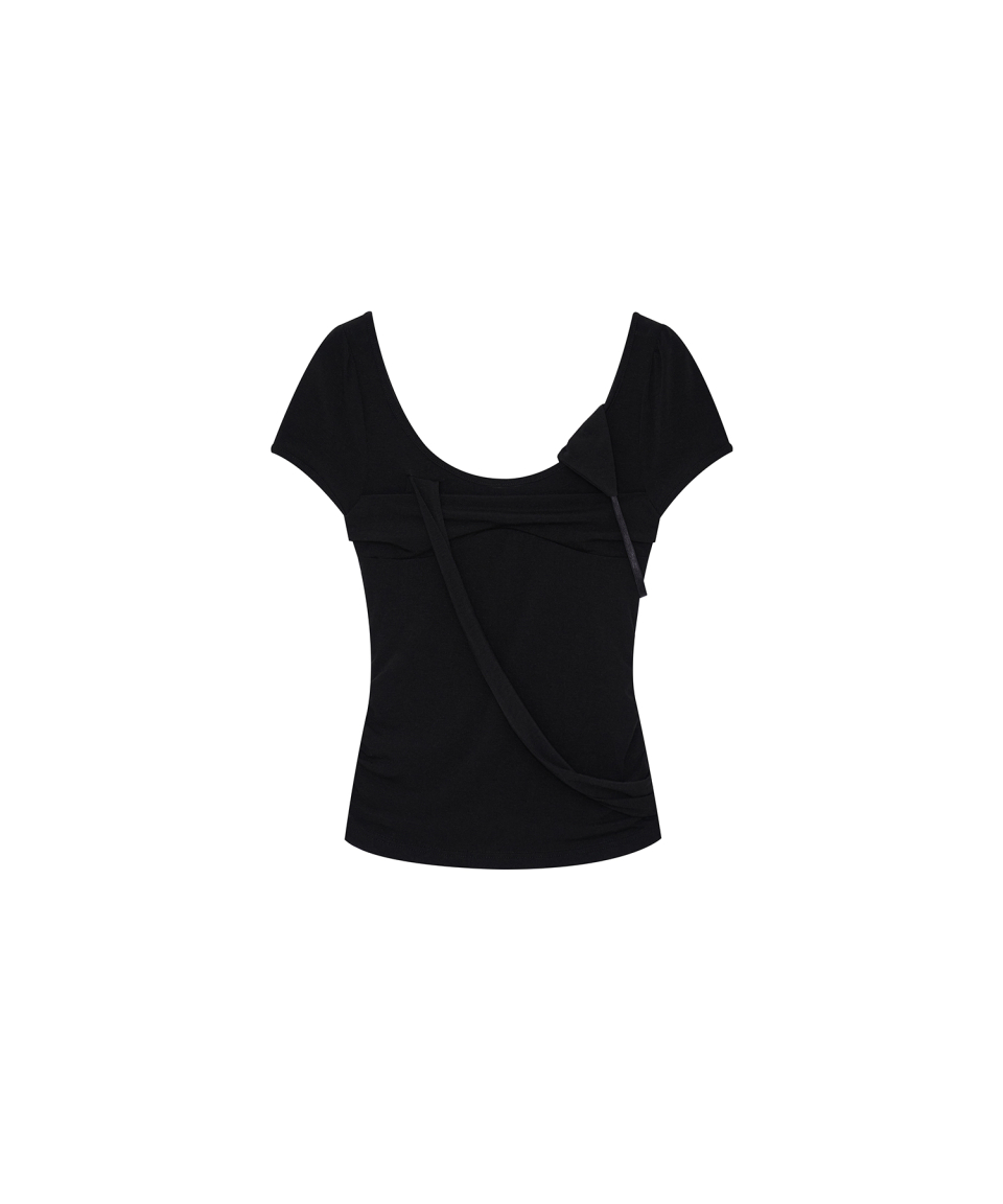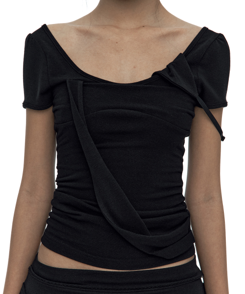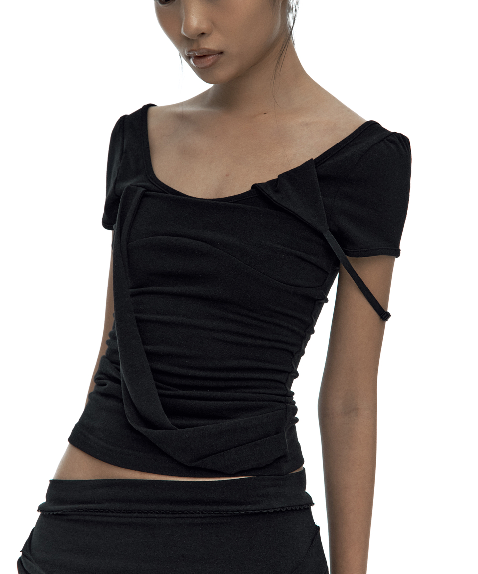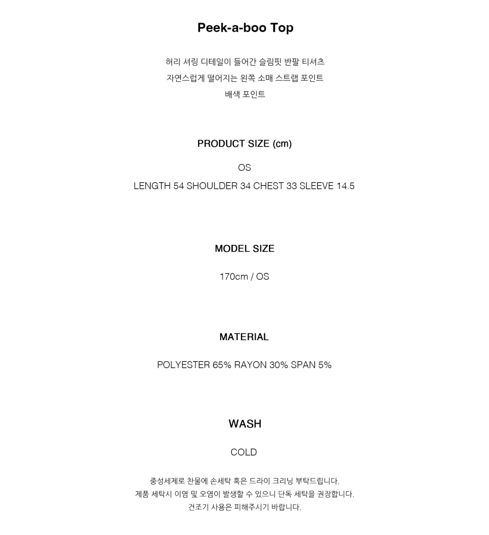 - 허리 셔링 디테일이 들어간 슬림핏 반팔 티셔츠