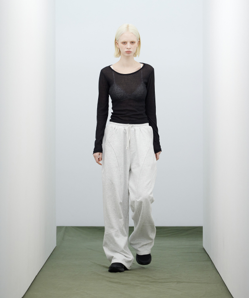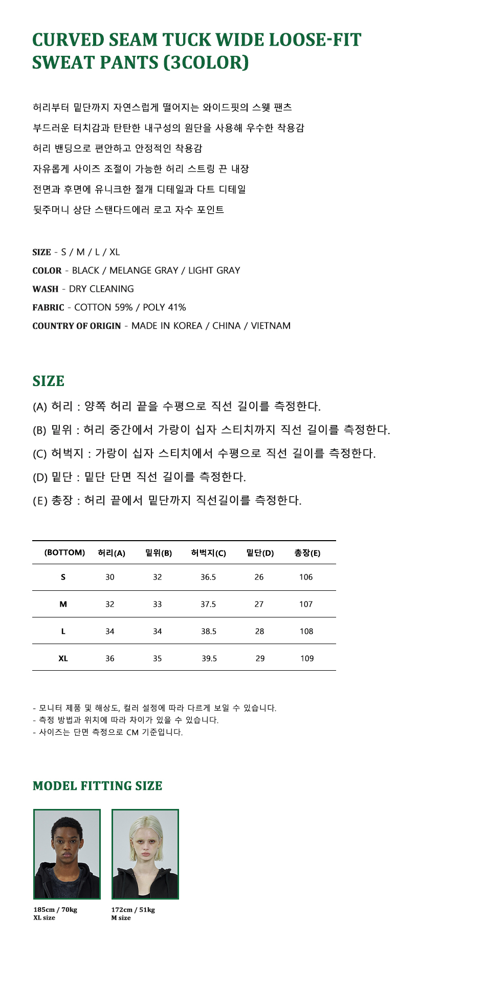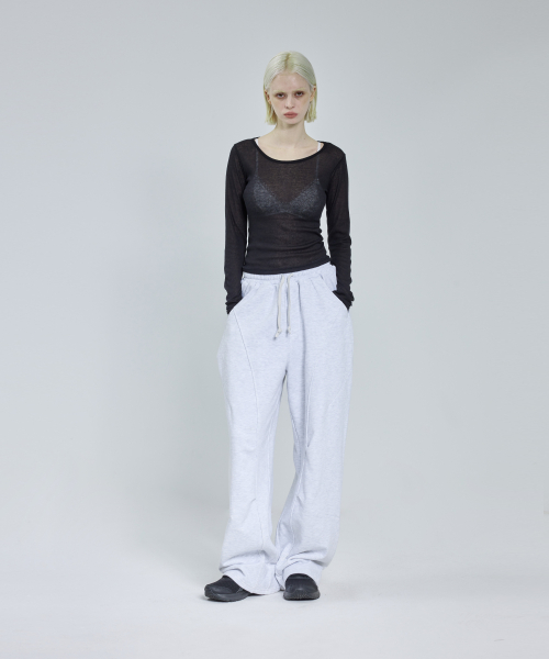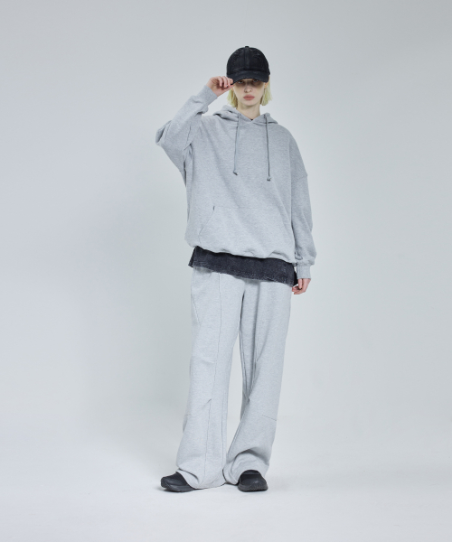 [사계절or기모or여름버전] 87-STAN280 커브드 절개 턱 와이드 루즈핏 스웻팬츠 (3color)