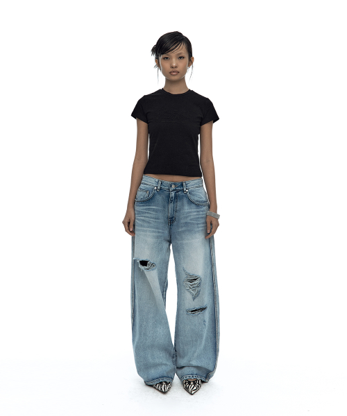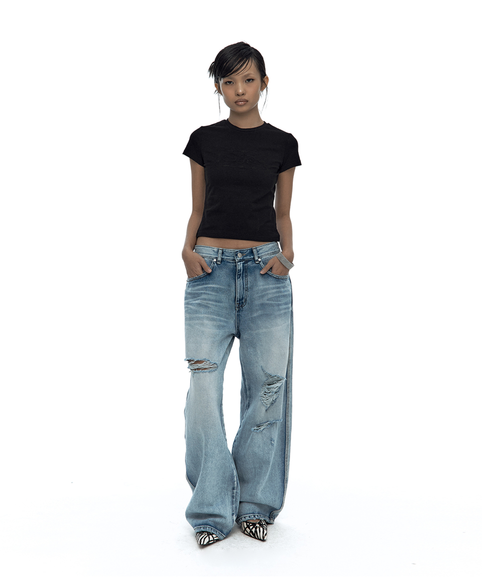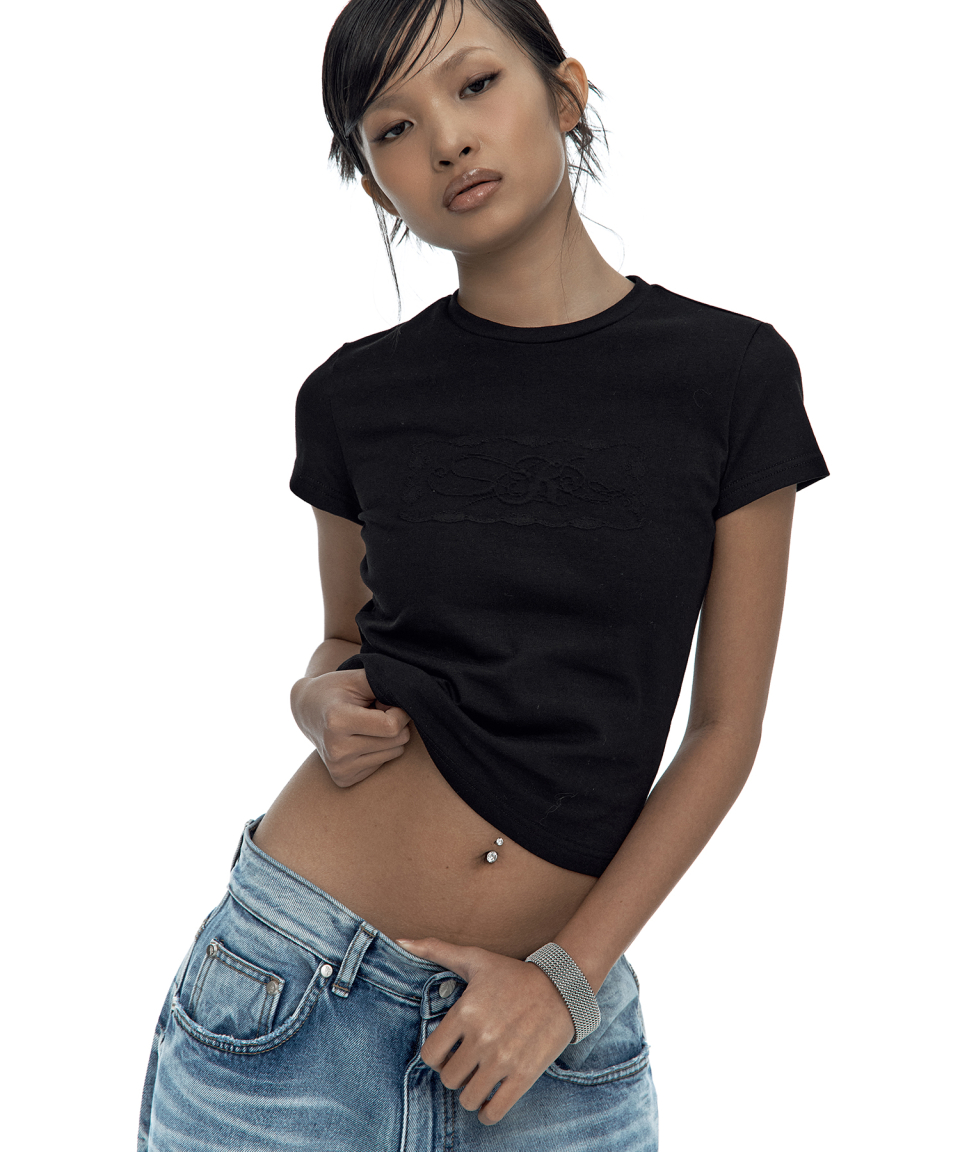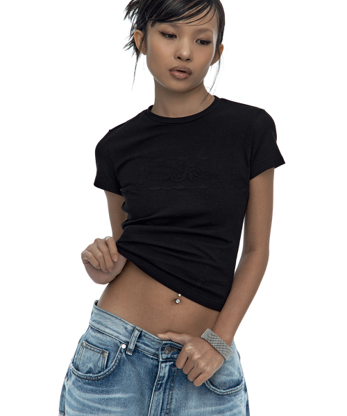 - 엠보 그래픽 디자인의 반팔 티셔츠