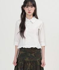 W 커브드 버튼 프릴 셔츠 (WHITE)