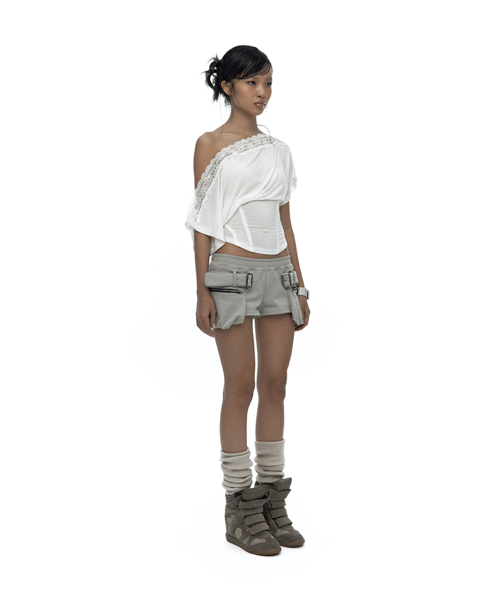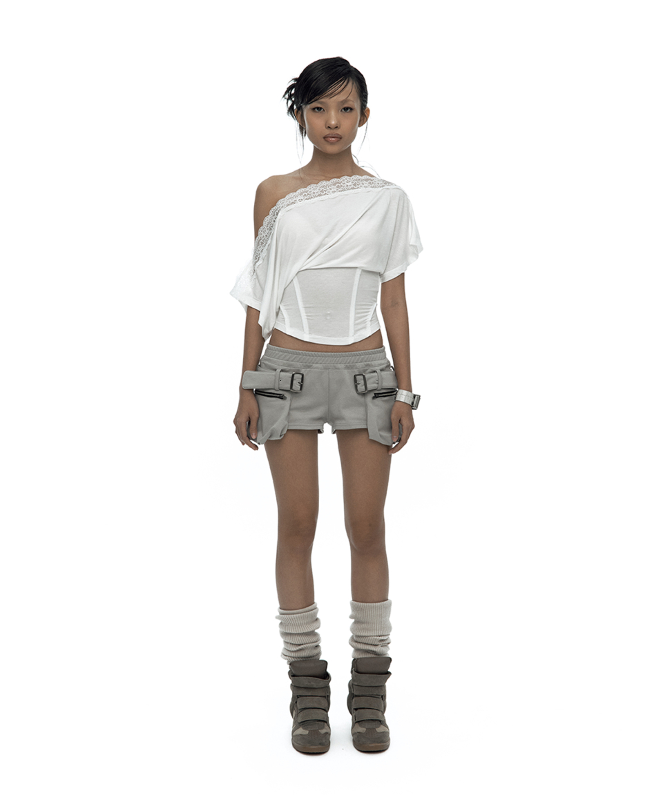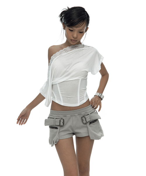 Lace One Shoulder Corset Tee White