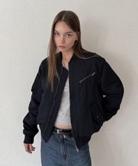 디스트레스드 오버사이즈 봄버 자켓 - 블랙