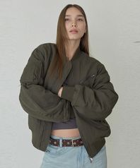 디스트레스드 오버사이즈 봄버 자켓 - 카키