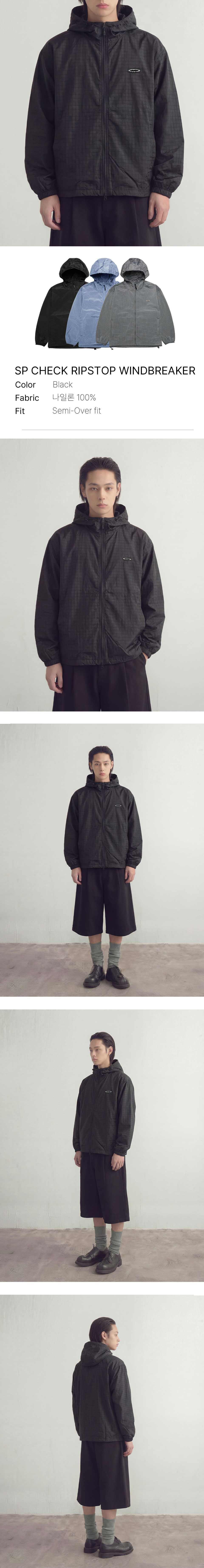 SP 체크 립스탑 바람막이 블랙
