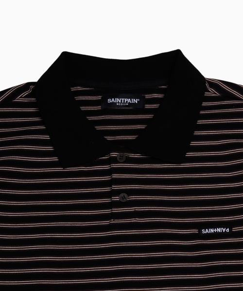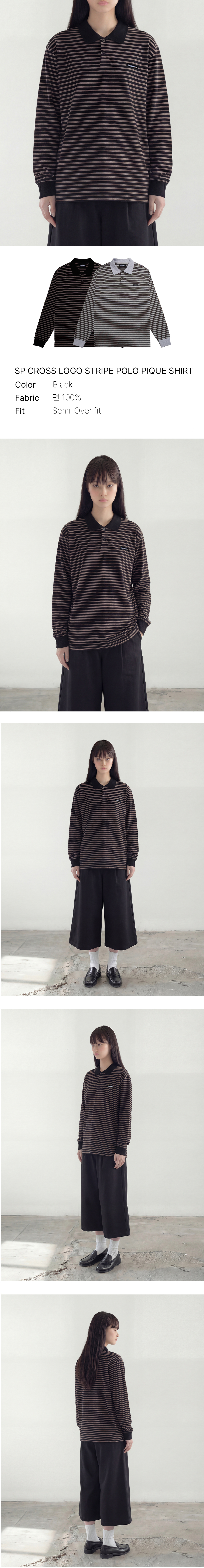 SP 크로스 로고 스트라이프 폴로 피케 셔츠 블랙