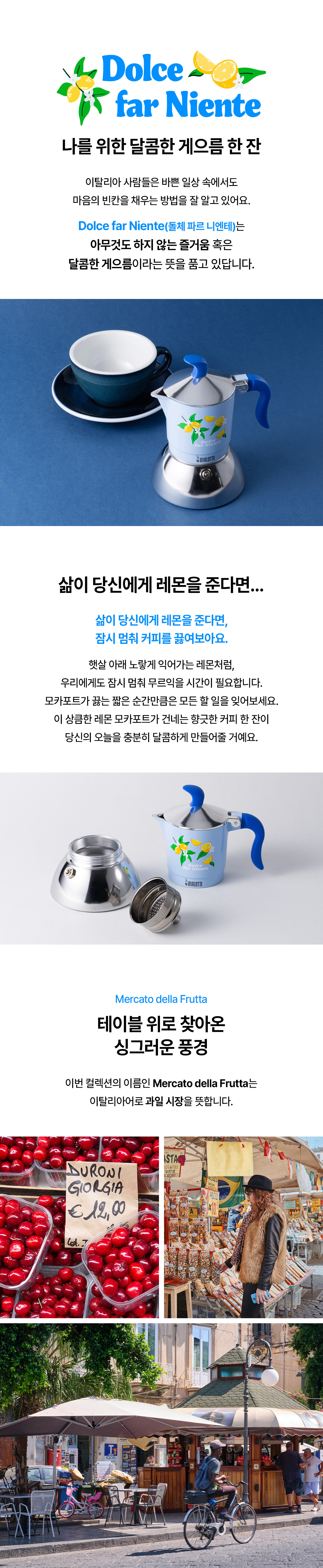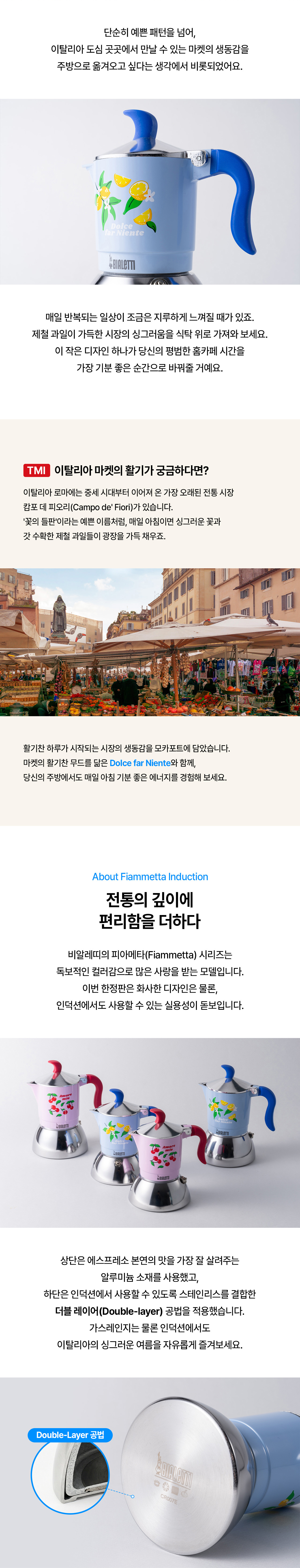 비알레띠(BIALETTI)는 오랜 전통을 가진 모카포트의 대표적인 브랜드입니다. 세계 최초로 가정용 에스프레소 커피메이커를 개발한 비알레띠는 1933년에 창립되어, 끊임없는 연구 개발을 통해 전통과 기술 혁신을 겸비한 완벽한 제품을 생산하고 있습니다.