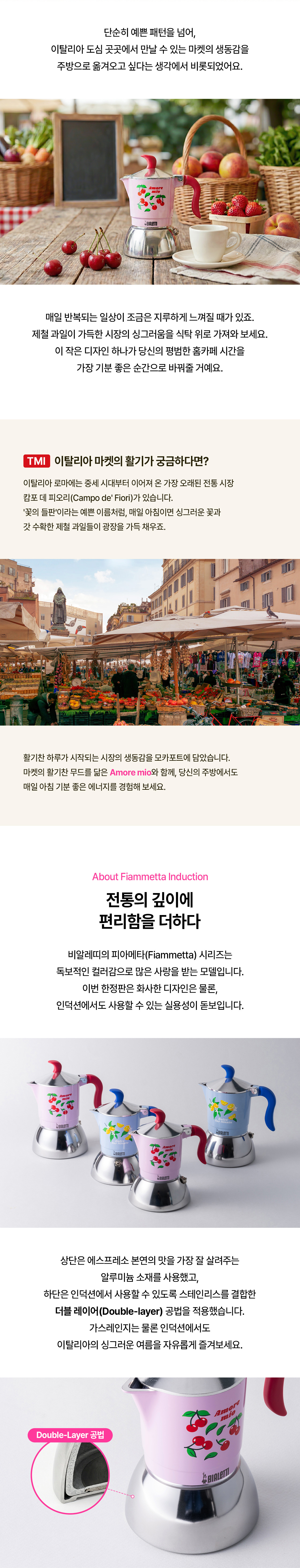 비알레띠(BIALETTI)는 오랜 전통을 가진 모카포트의 대표적인 브랜드입니다. 세계 최초로 가정용 에스프레소 커피메이커를 개발한 비알레띠는 1933년에 창립되어, 끊임없는 연구 개발을 통해 전통과 기술 혁신을 겸비한 완벽한 제품을 생산하고 있습니다.