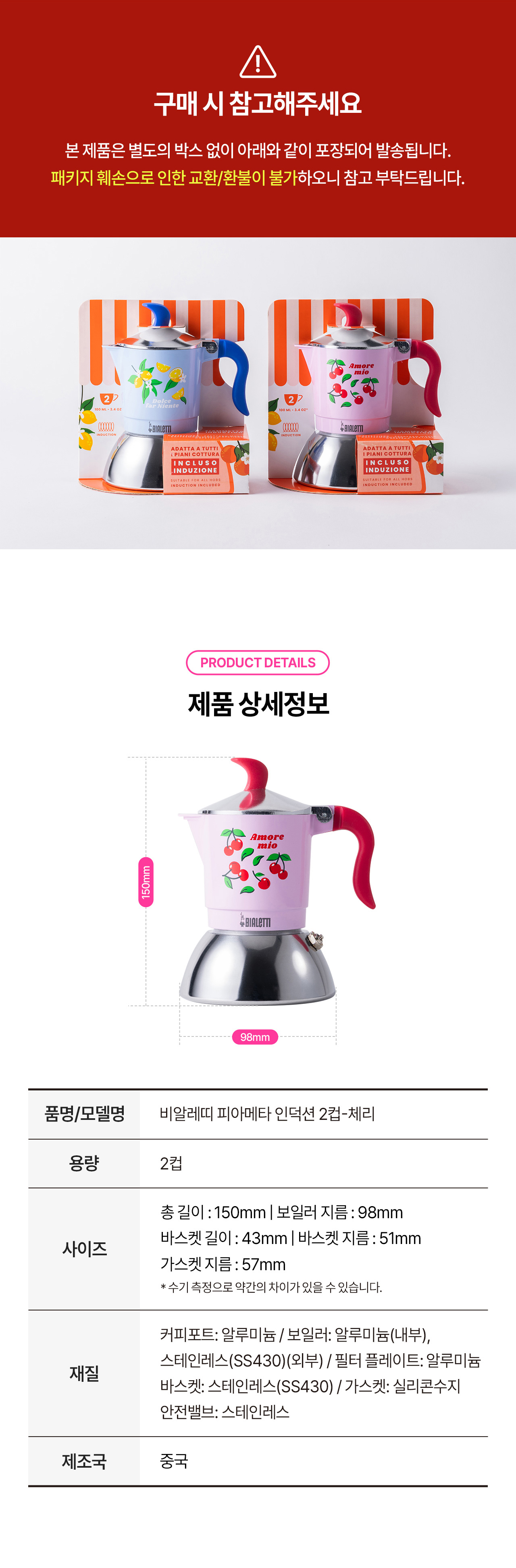 피아메타 인덕션 핑크 체리 2컵