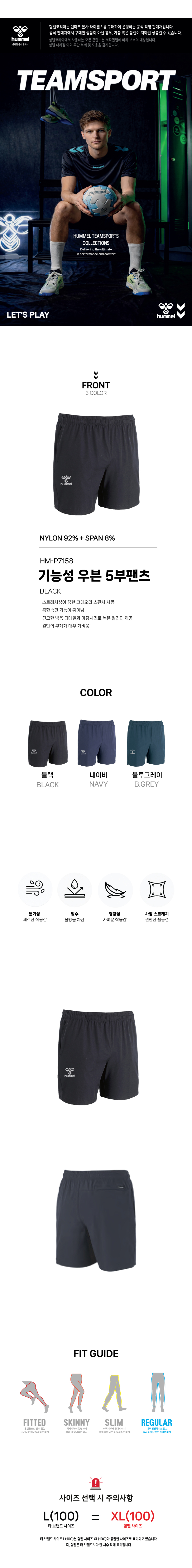 기능성 5부 우븐 팬츠 - 블랙 (HM-P7158)
