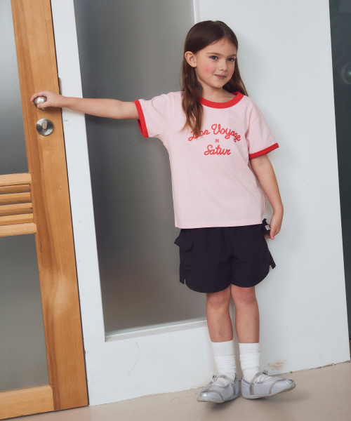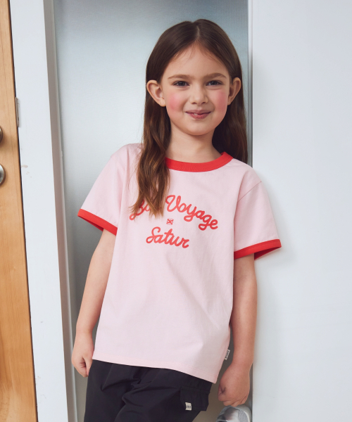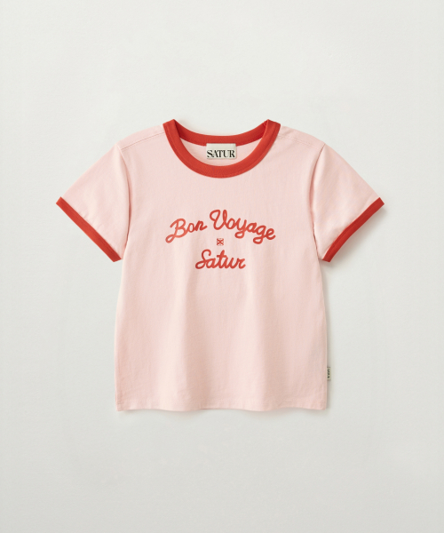 (K) 본 보야지 링거 반팔 티셔츠 핑크