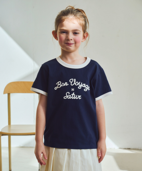 (K) 본 보야지 링거 반팔 티셔츠 네이비