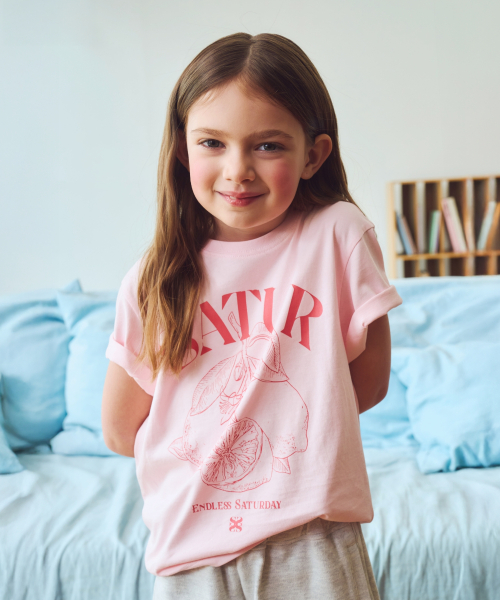 (K) 카프리 시트론 드로잉 썸머 그래픽 반팔 티셔츠 핑크
