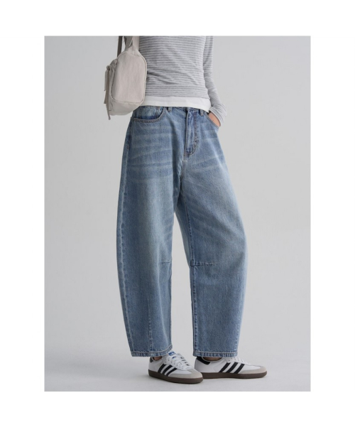 넉넉한 허벅지에서 밑단으로 갈수록 좁아지는 형태의 맘핏 데님 팬츠입니다. 과하지 않은 루스 핏으로 편안하게 착용할 수 있습니다. 발목까지 떨어지는 길이로 간절기 데일리룩에 활용하기 좋습니다.