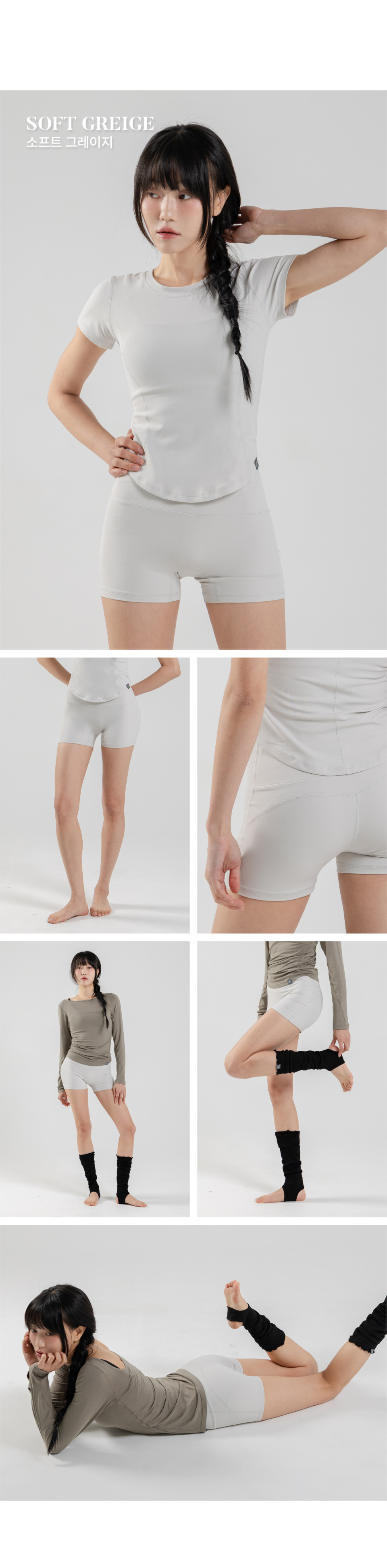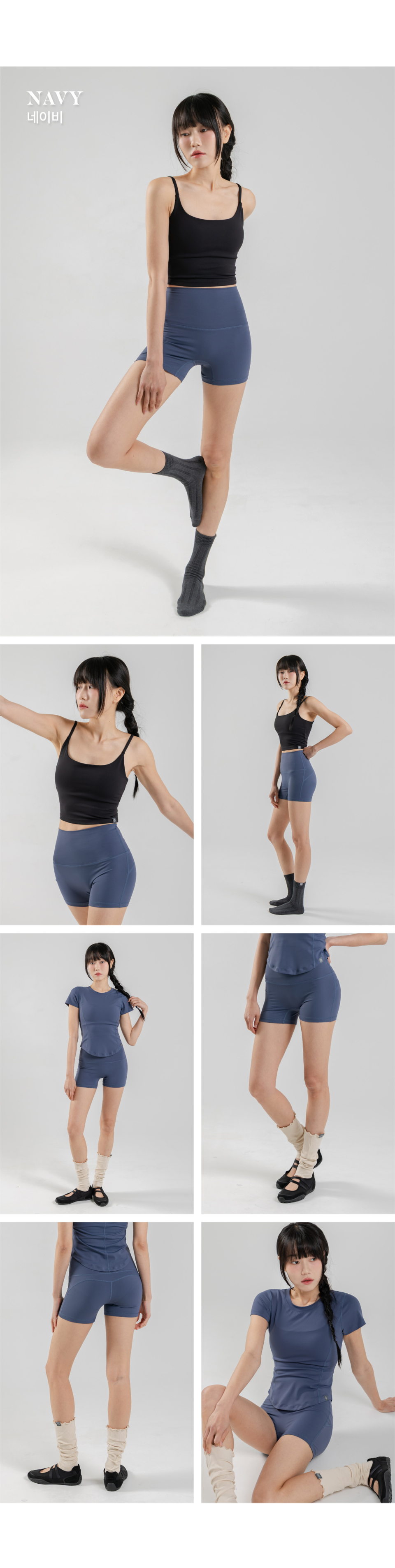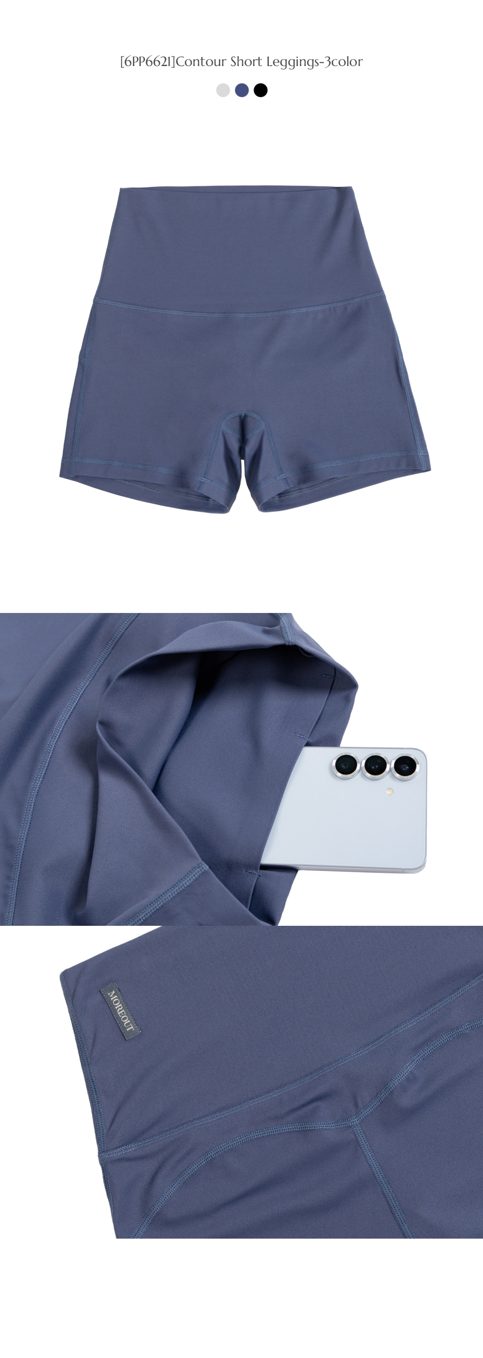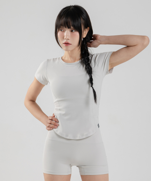 바디 라인을 따라 자연스럽게 정돈되는 컨투어 절개 라인의 숏 레깅스입니다.