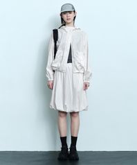시어한 매쉬 소재로 제작된 샤 미니 스커트입니다. 러플 디자인과 원단을 겹쳐 완성한 풍성한 실루엣이 귀여운 무드를 더합니다. 박시한 티셔츠와 함께 매치하여 스타일리시한 룩을 완성할 수 있습니다.