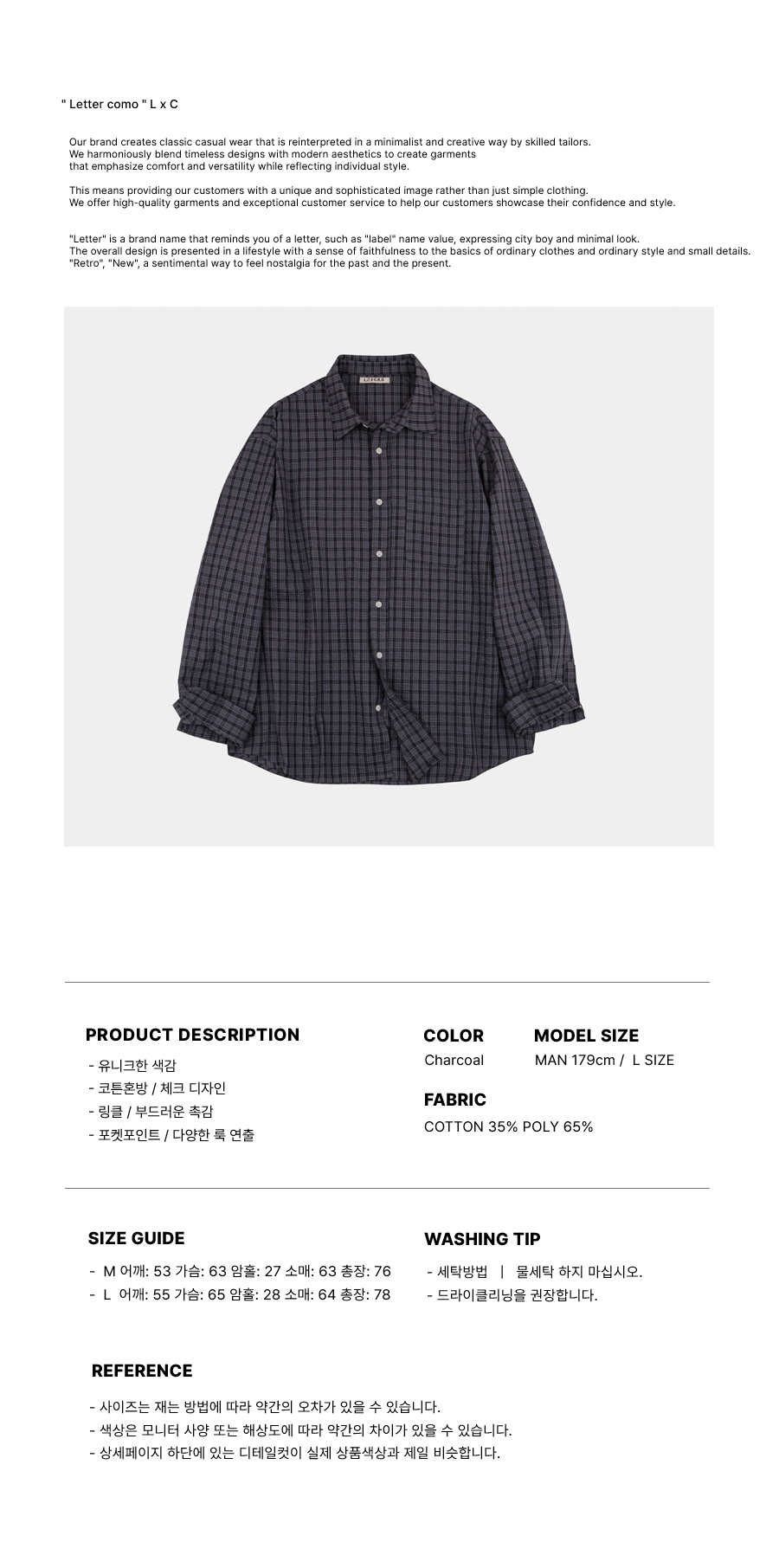 레테르코모(LETTERCOMO)는 새로움(New)과 과거(Retro)를 다양한 표현으로 즐길수 있는 이지와 내추럴을 추구하는 브랜드입니다. 과거와 현재의 향수를 느낄 수 있는 레테르만의 감성있는 옷을 만듭니다.