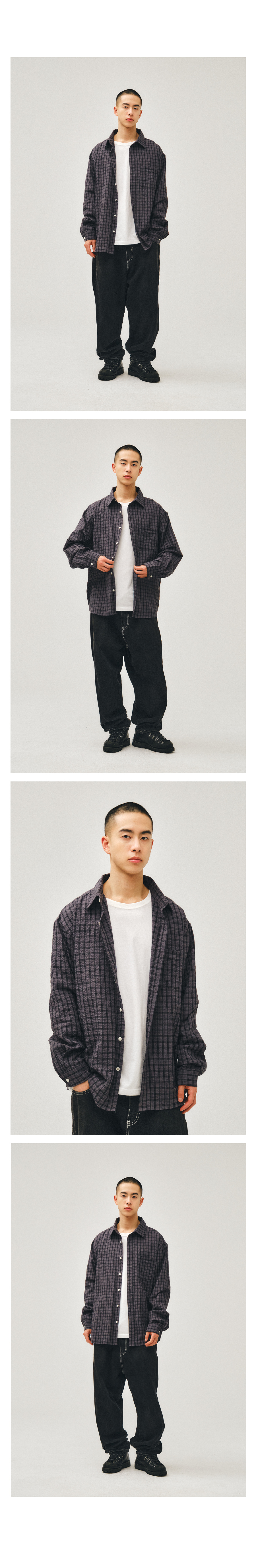 클로브 링클 체크 셔츠 챠콜
