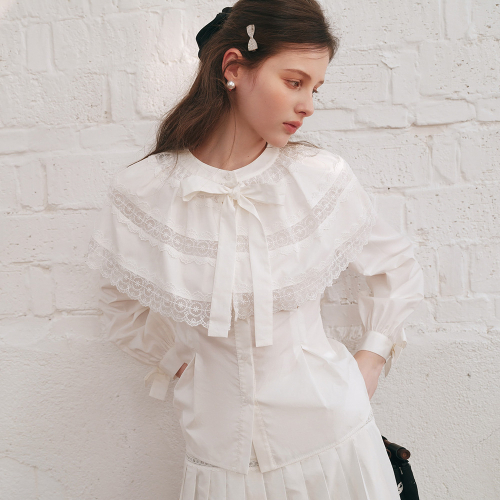 Cest_Romantic cape slim blouse