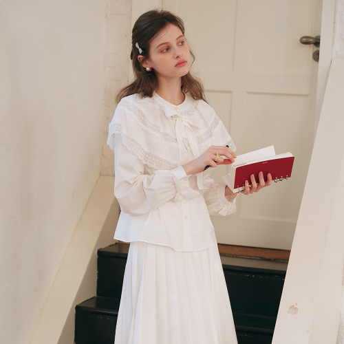 Cest_Pure embroidery lace tiered blouse