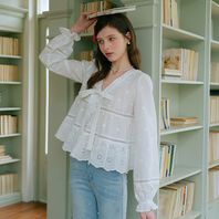 Cest_Cotton embroidery lapel blouse