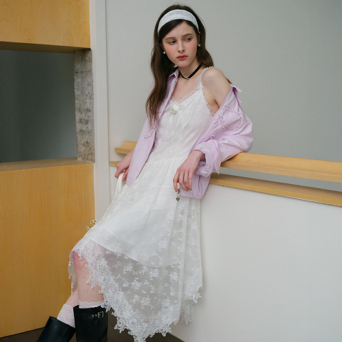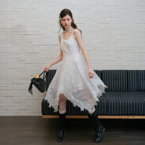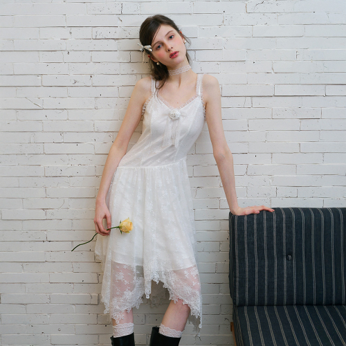 Cest_White lace camisole dress
