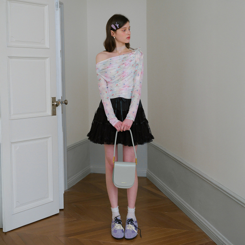 Cest_Mesh floral off-shoulder blouse