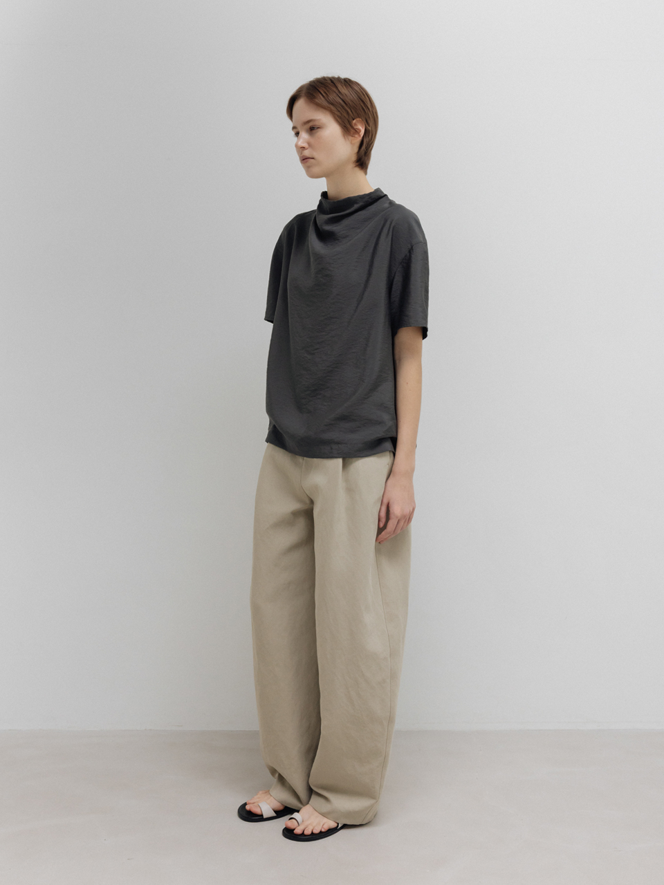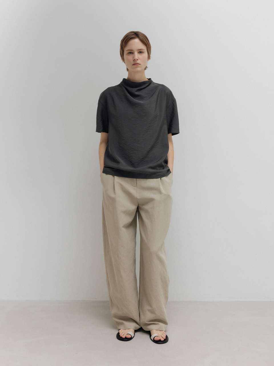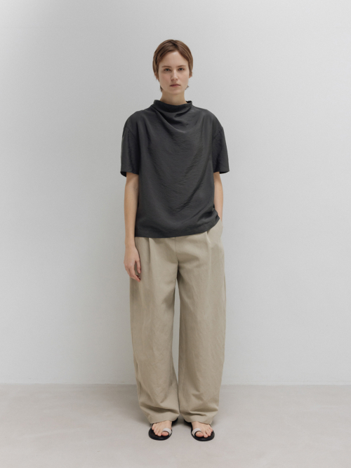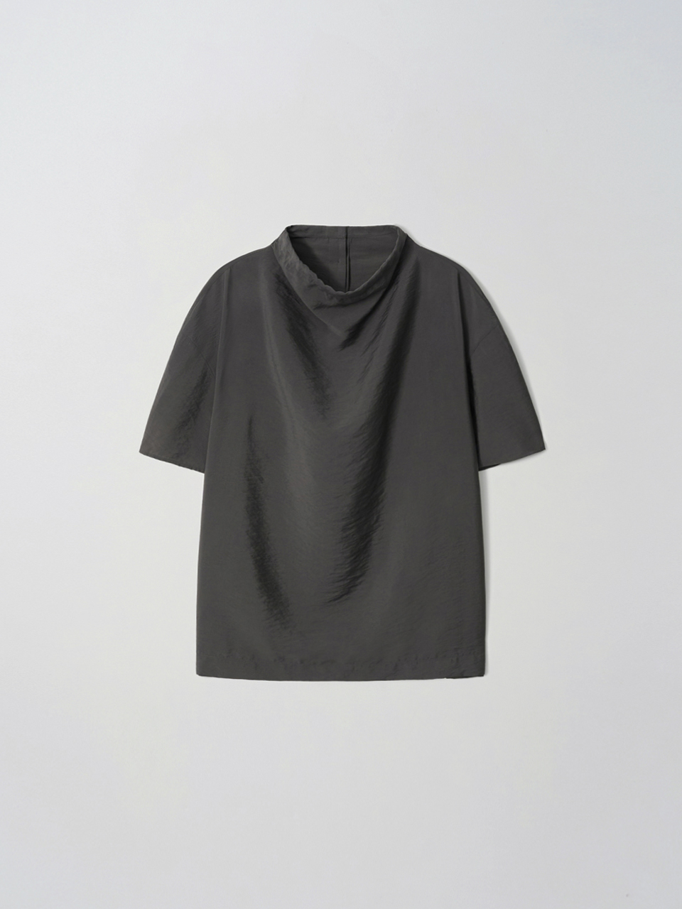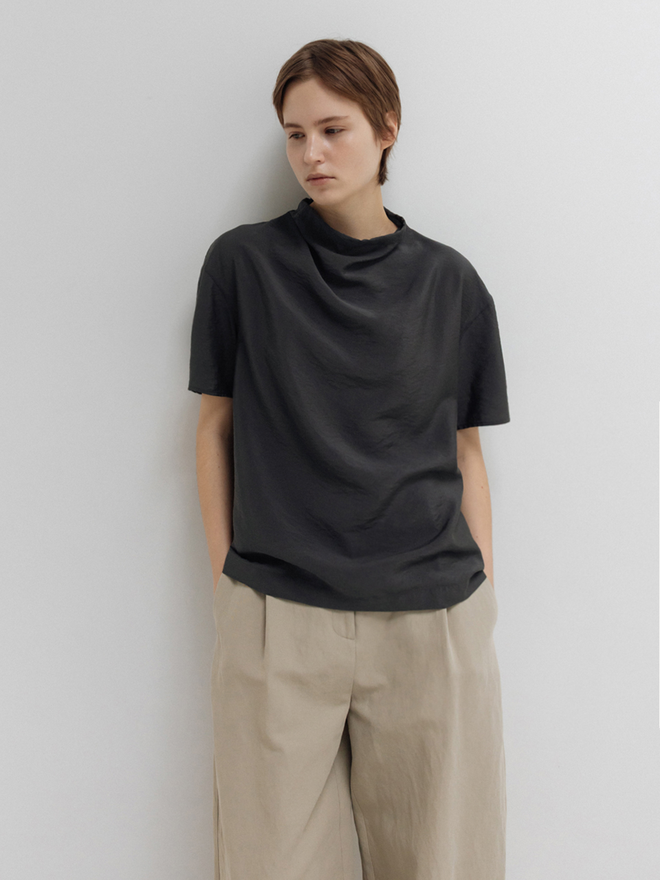 -자연스러운 드레이프 디테일이 돋보이는 카울 넥 하프 블라우스