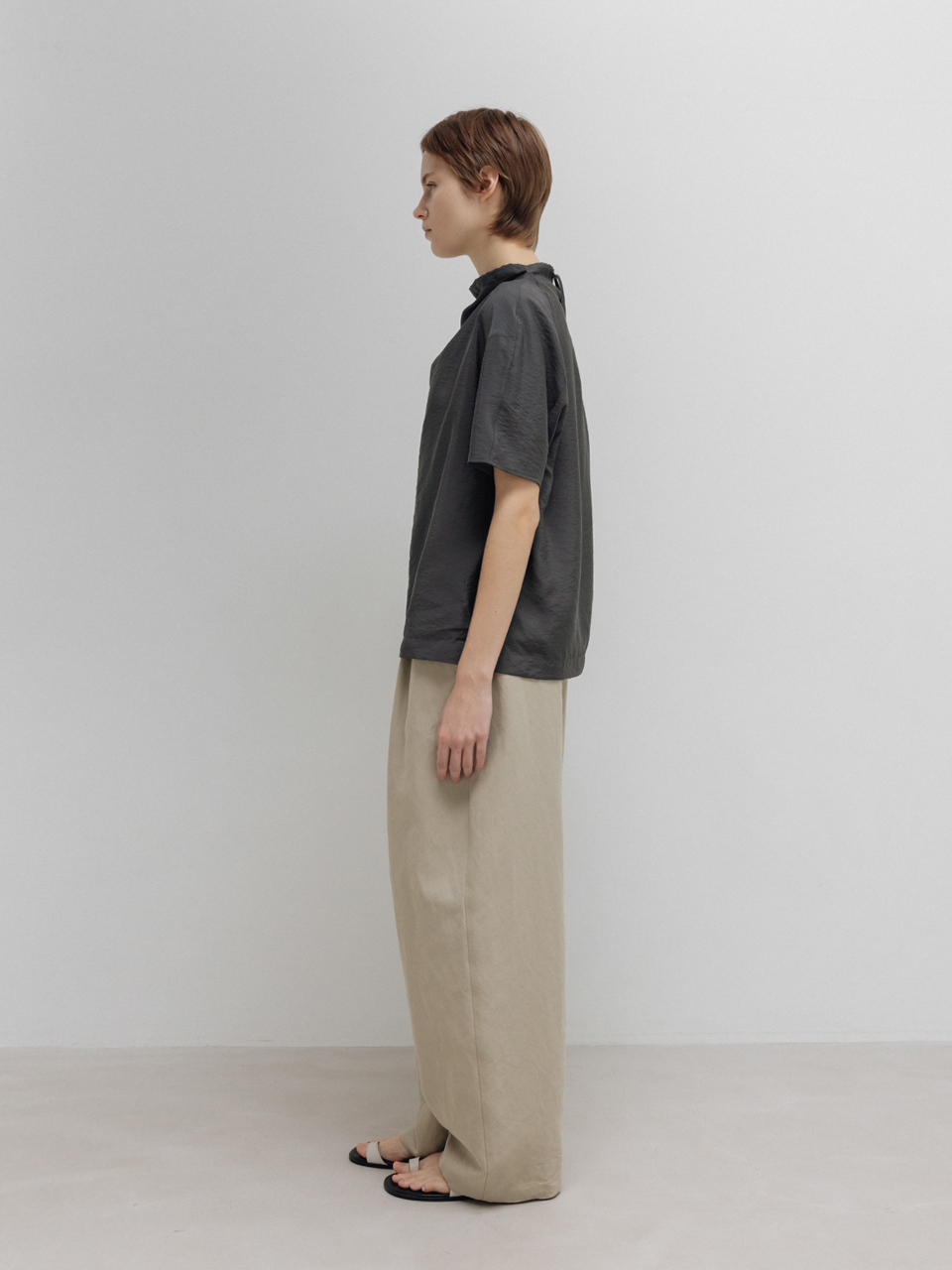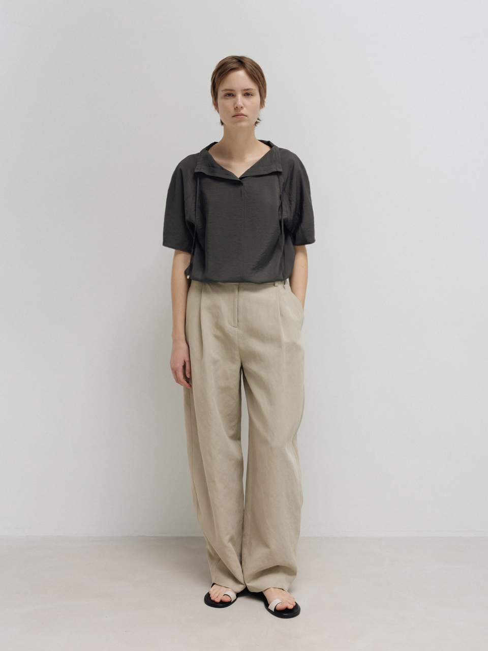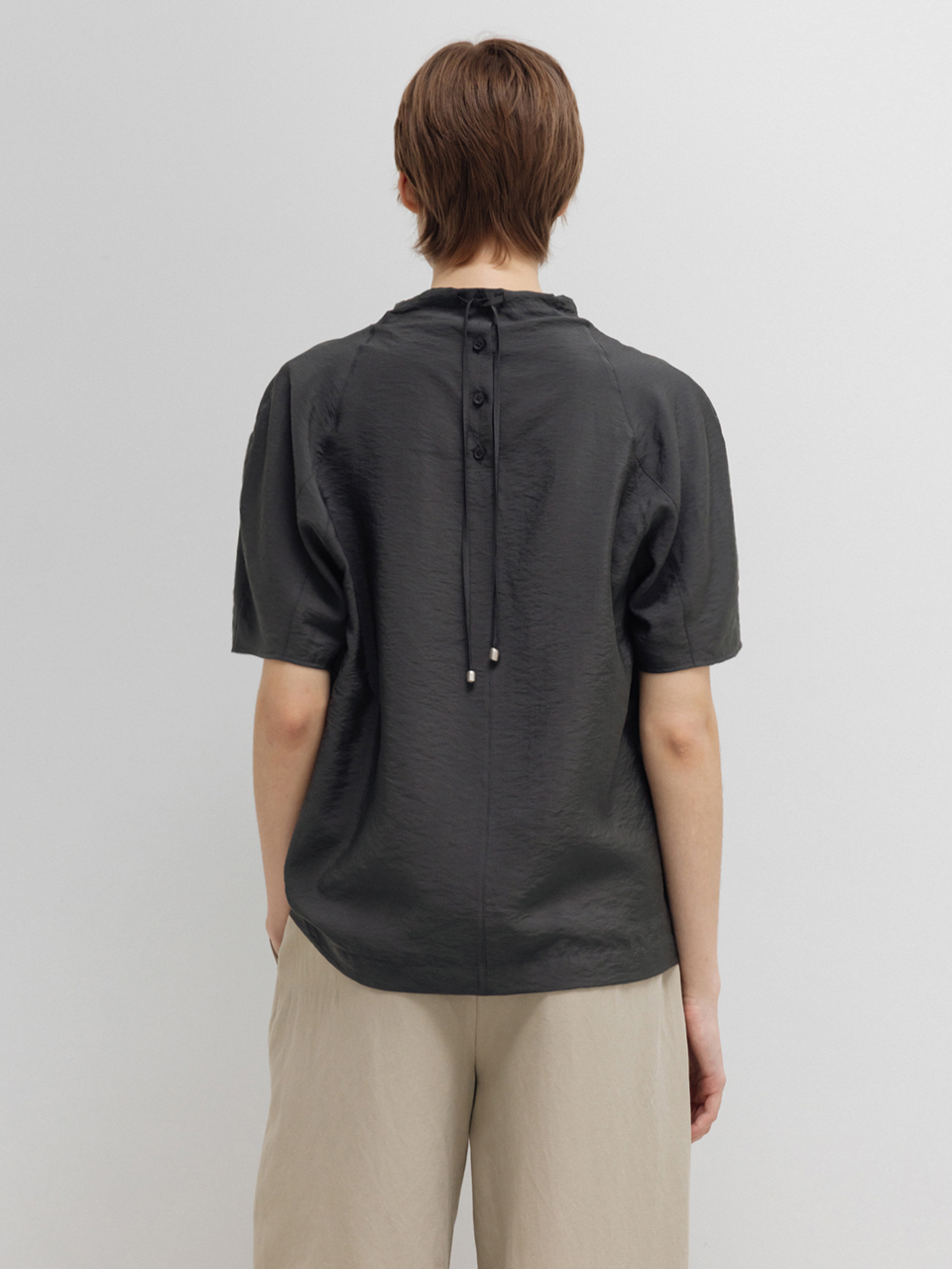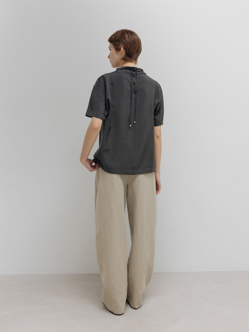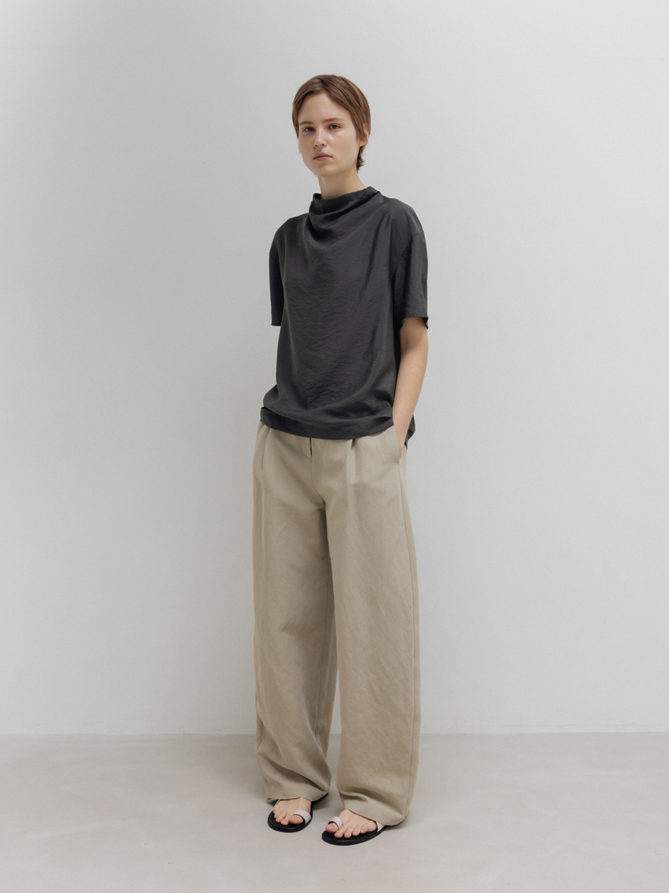 -자연스러운 드레이프 디테일이 돋보이는 카울 넥 하프 블라우스